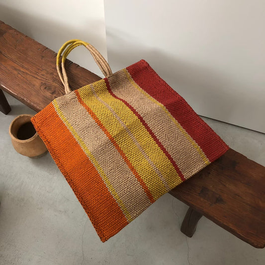 Maison Bengal / Hand woven jute bag / Thick Stripe / Orange × Yellow